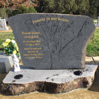 We are all very happy with David's headstone, its base and the little angel. I am sure we might not have been quite so happy, if not for your suggestions and advice throughout.
